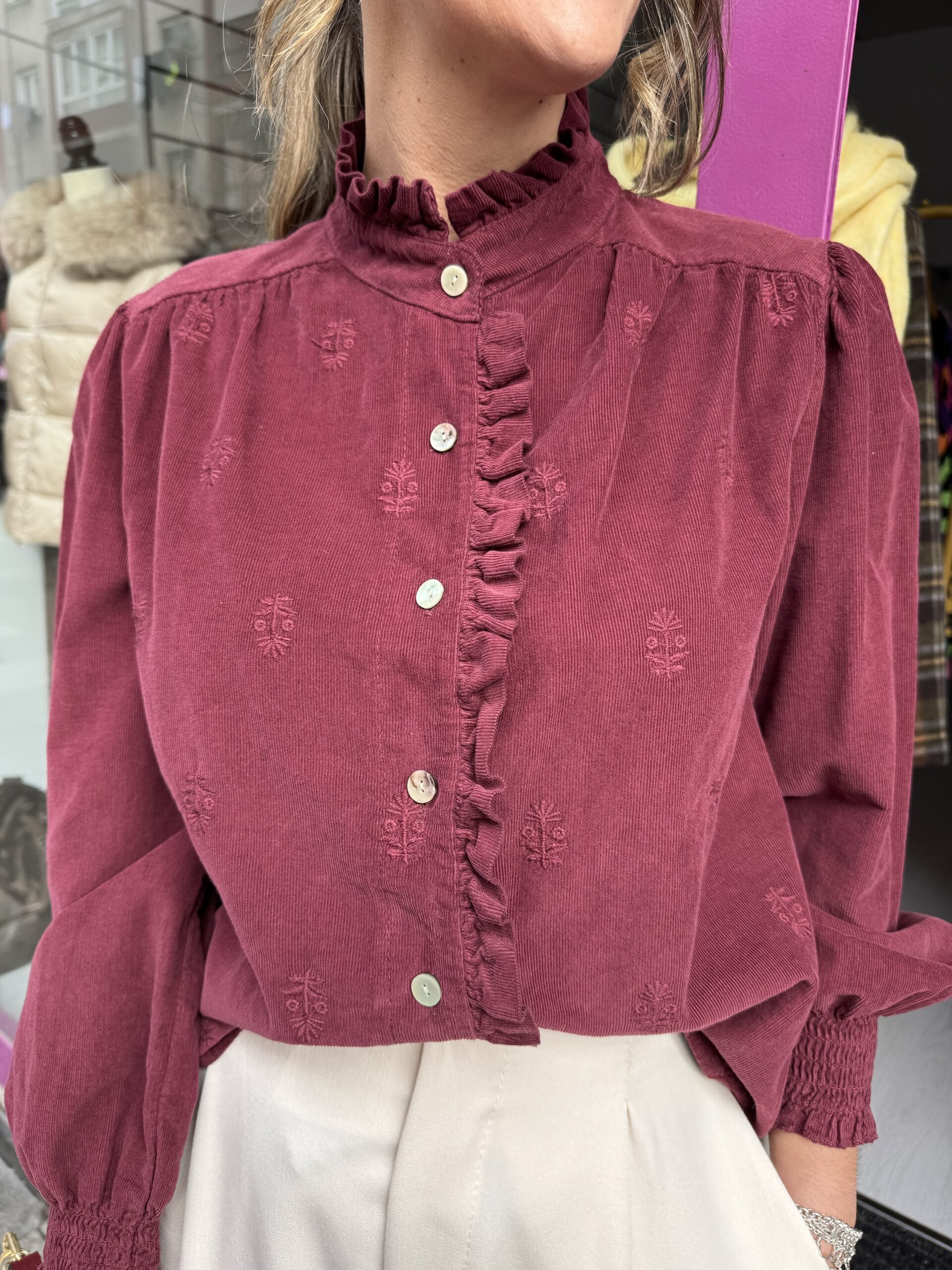 Bajo camisa burdeos