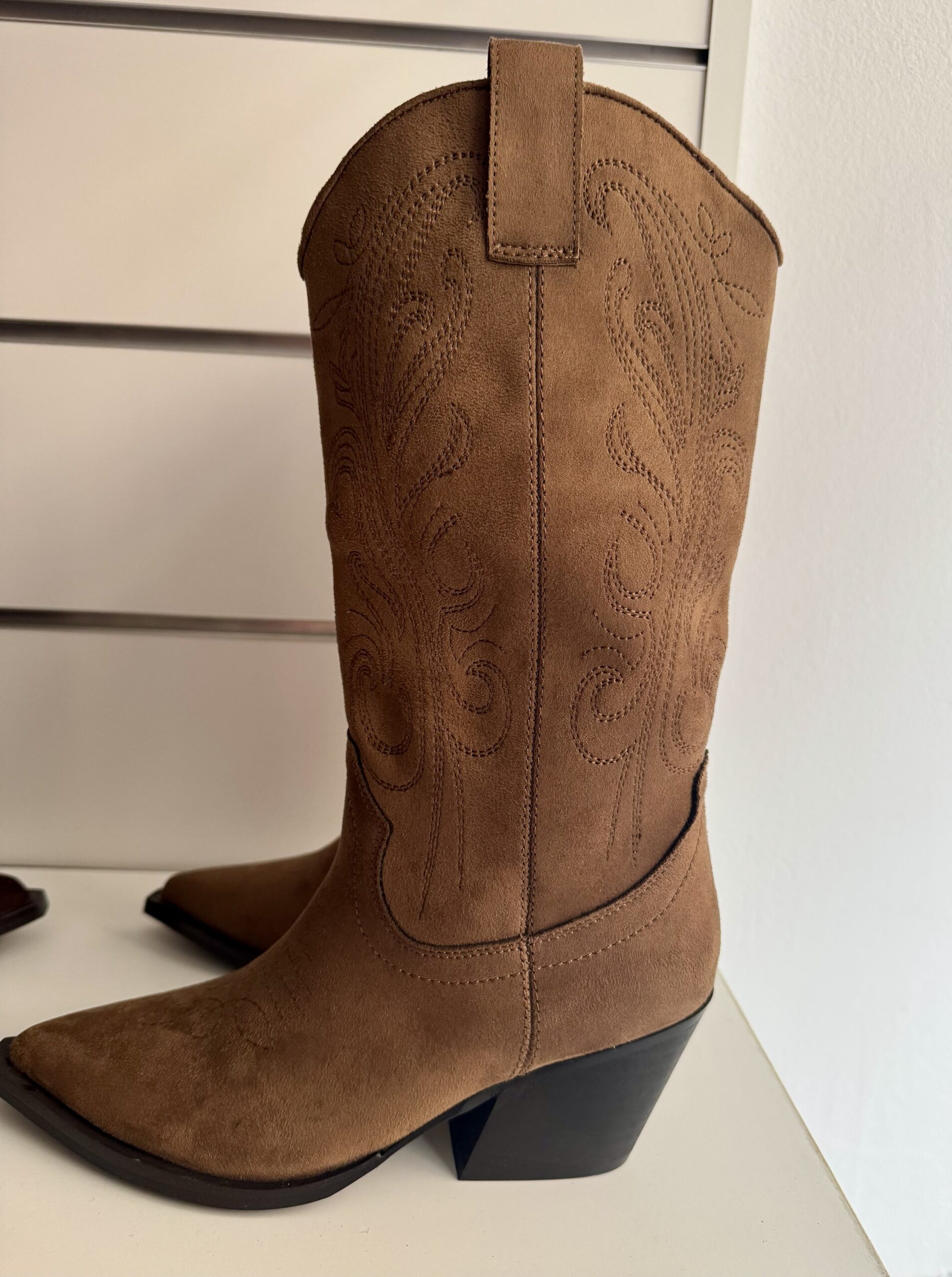 Bota campera estilo cowboy en color marrón camel . Cierre con cremallera interna y tiradores para más comodidad a la hora de calzarnos.