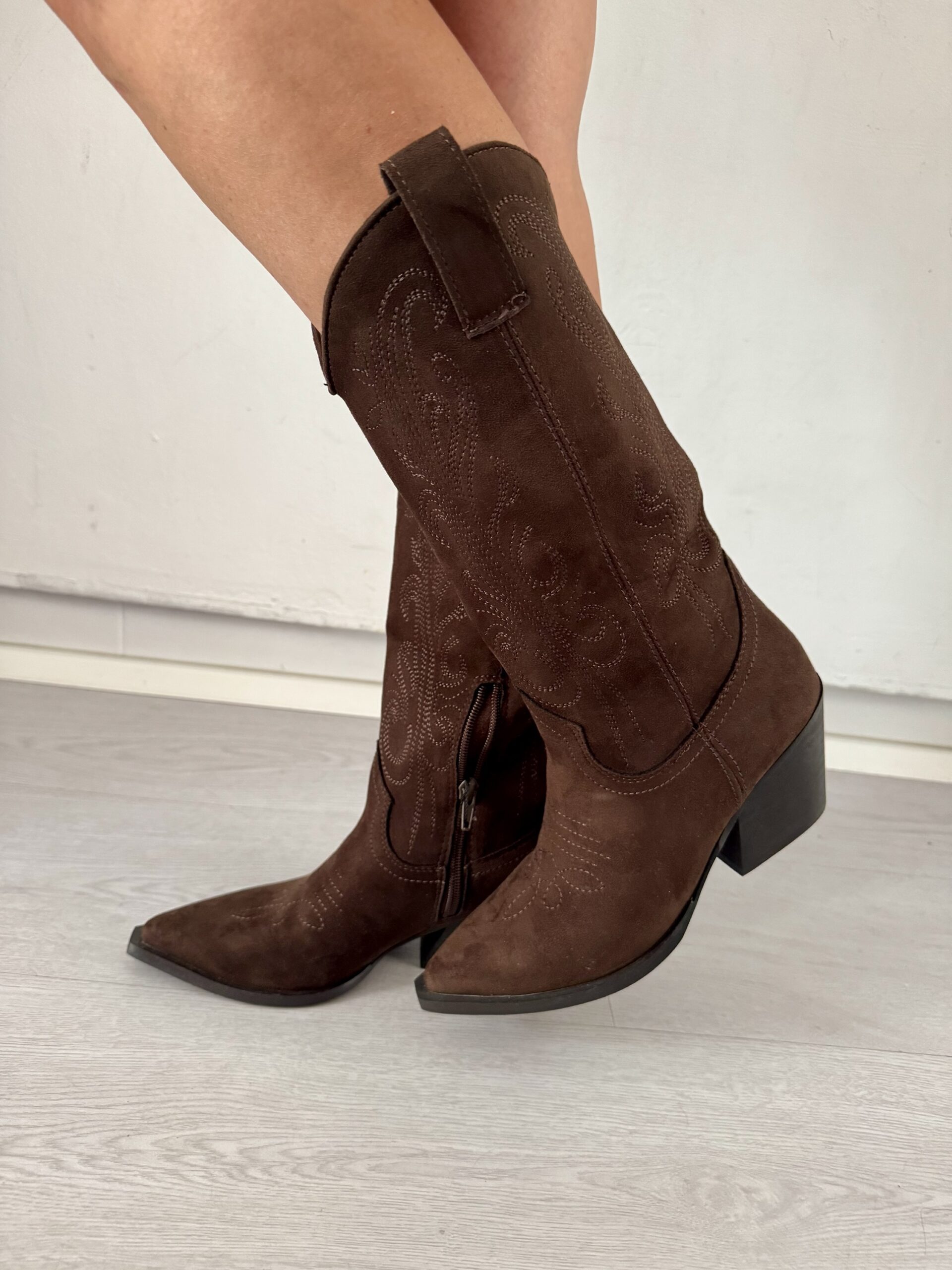 Botas camperas en color marrón chocolate. Cremallera interna y tiradores para ayudar a ponerla.