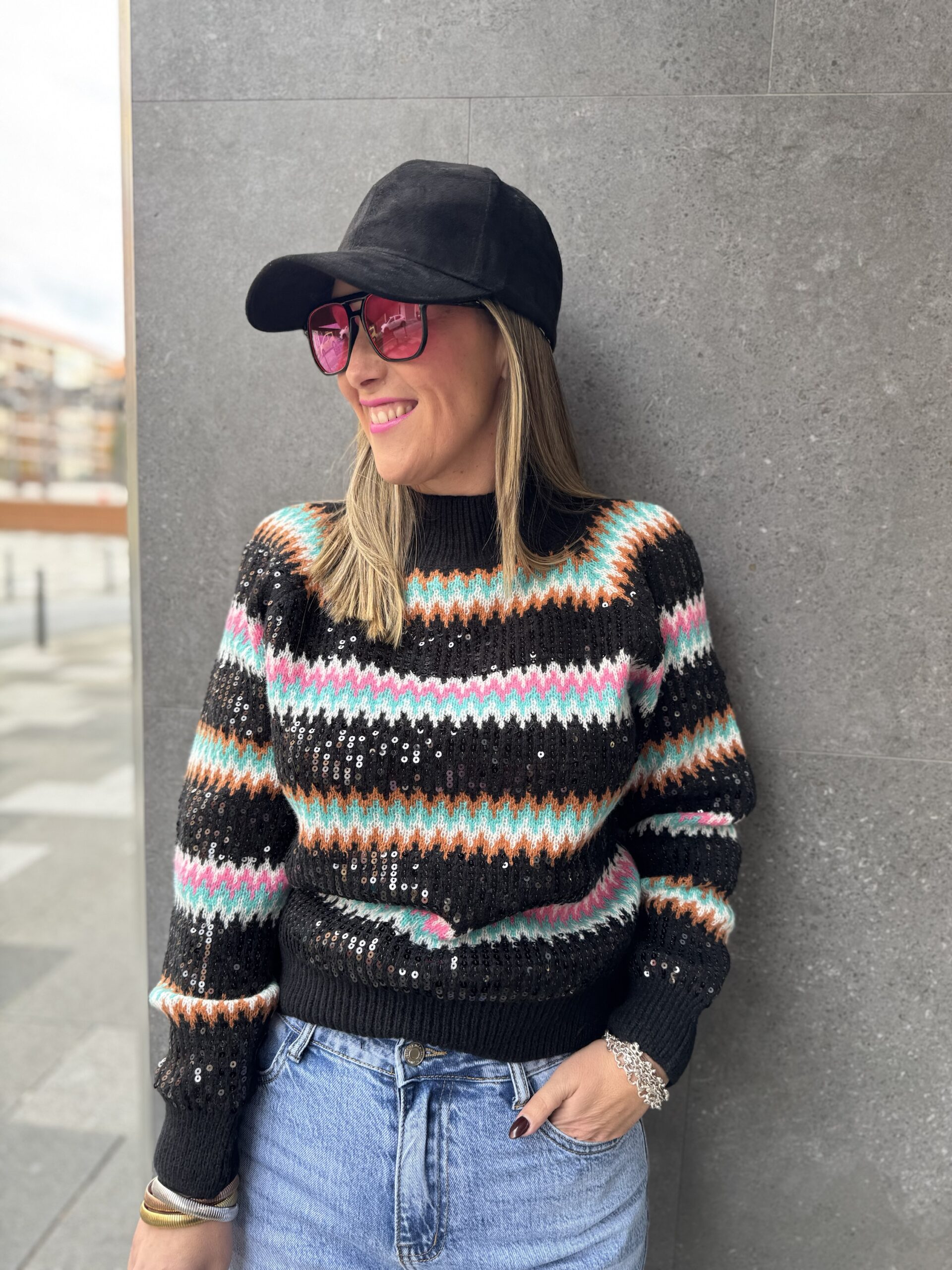 Jersey de punto con detalle de lentejuelas en parte delantera .