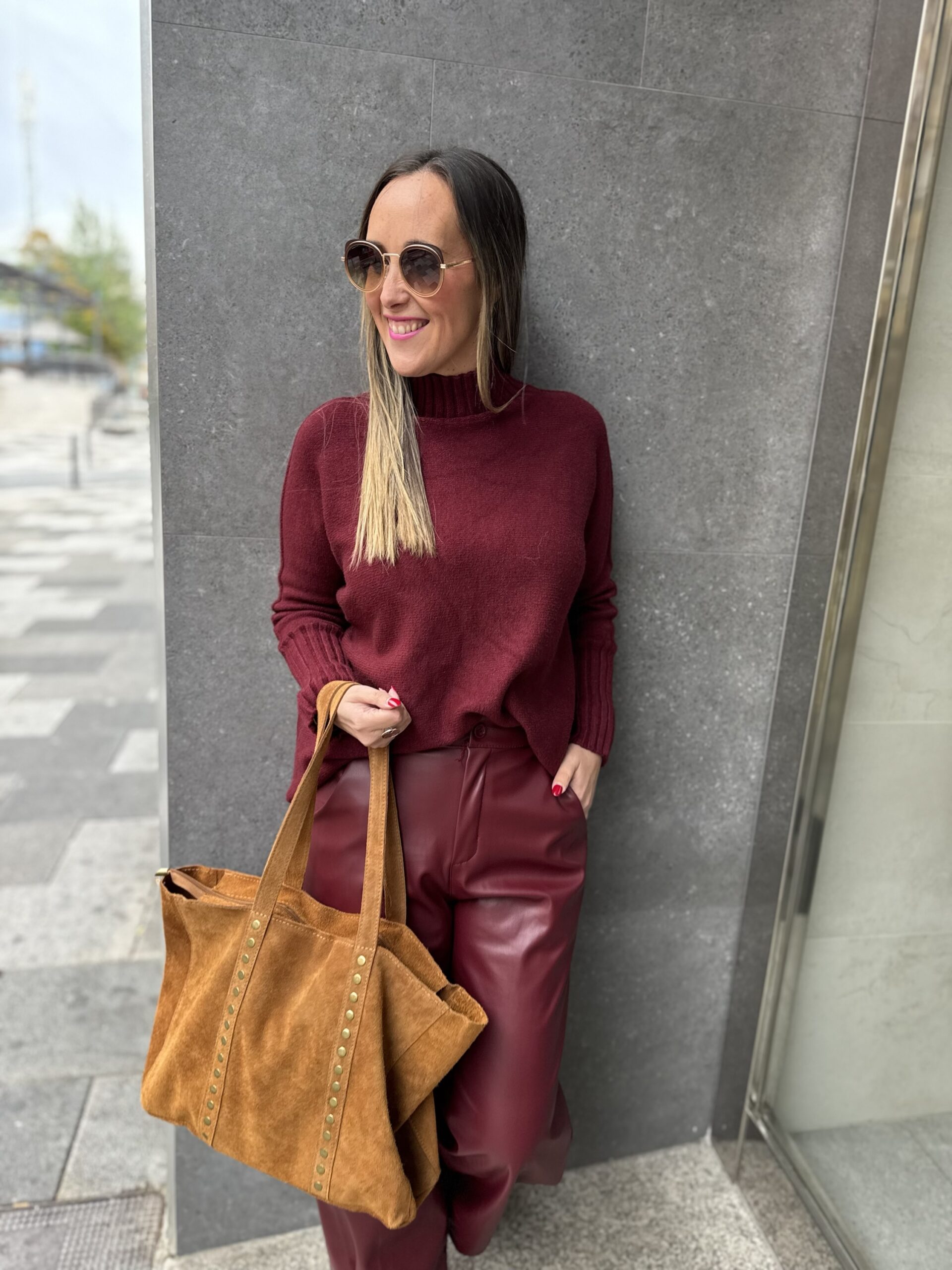 Jersey de punto súper dulce en color Burdeos .