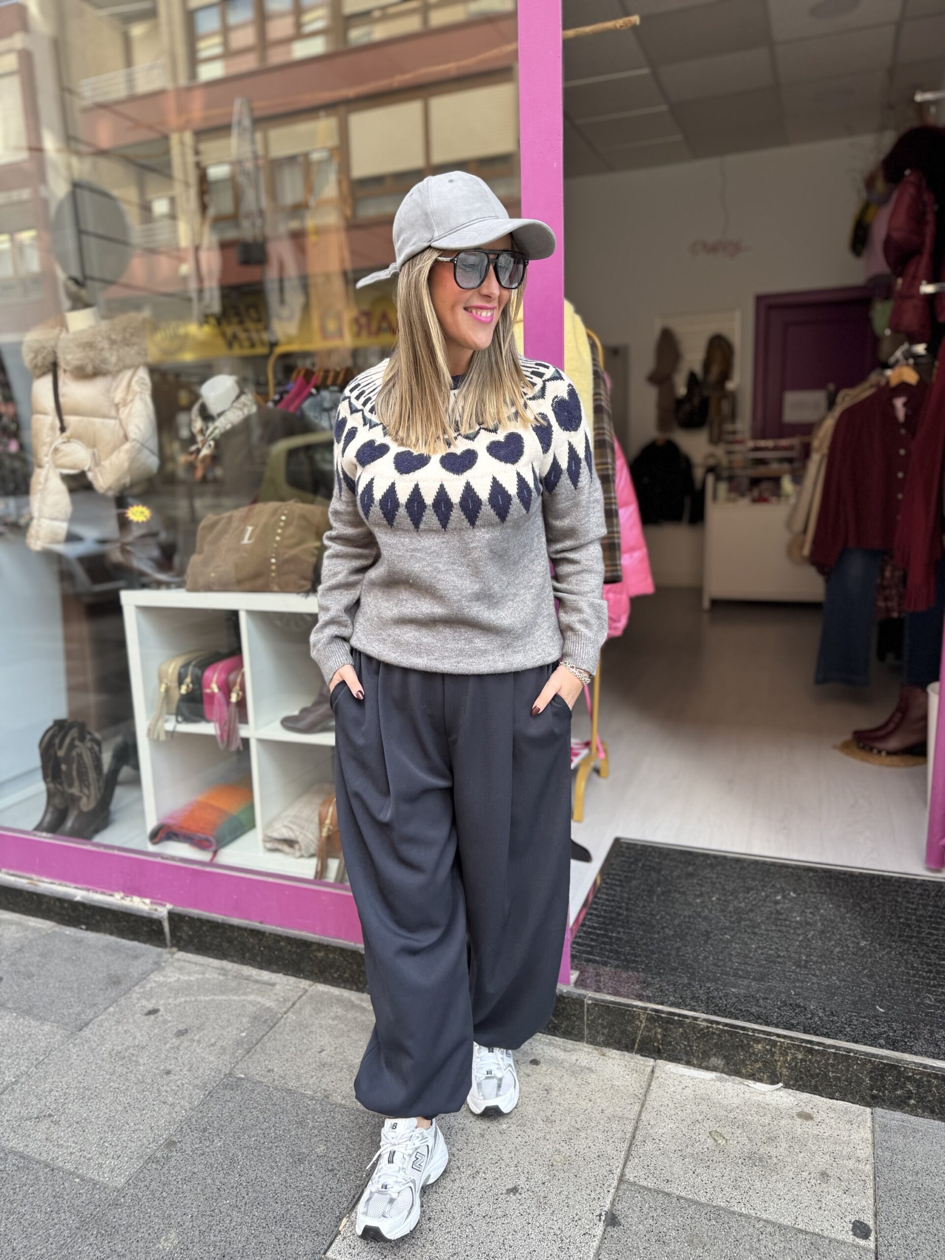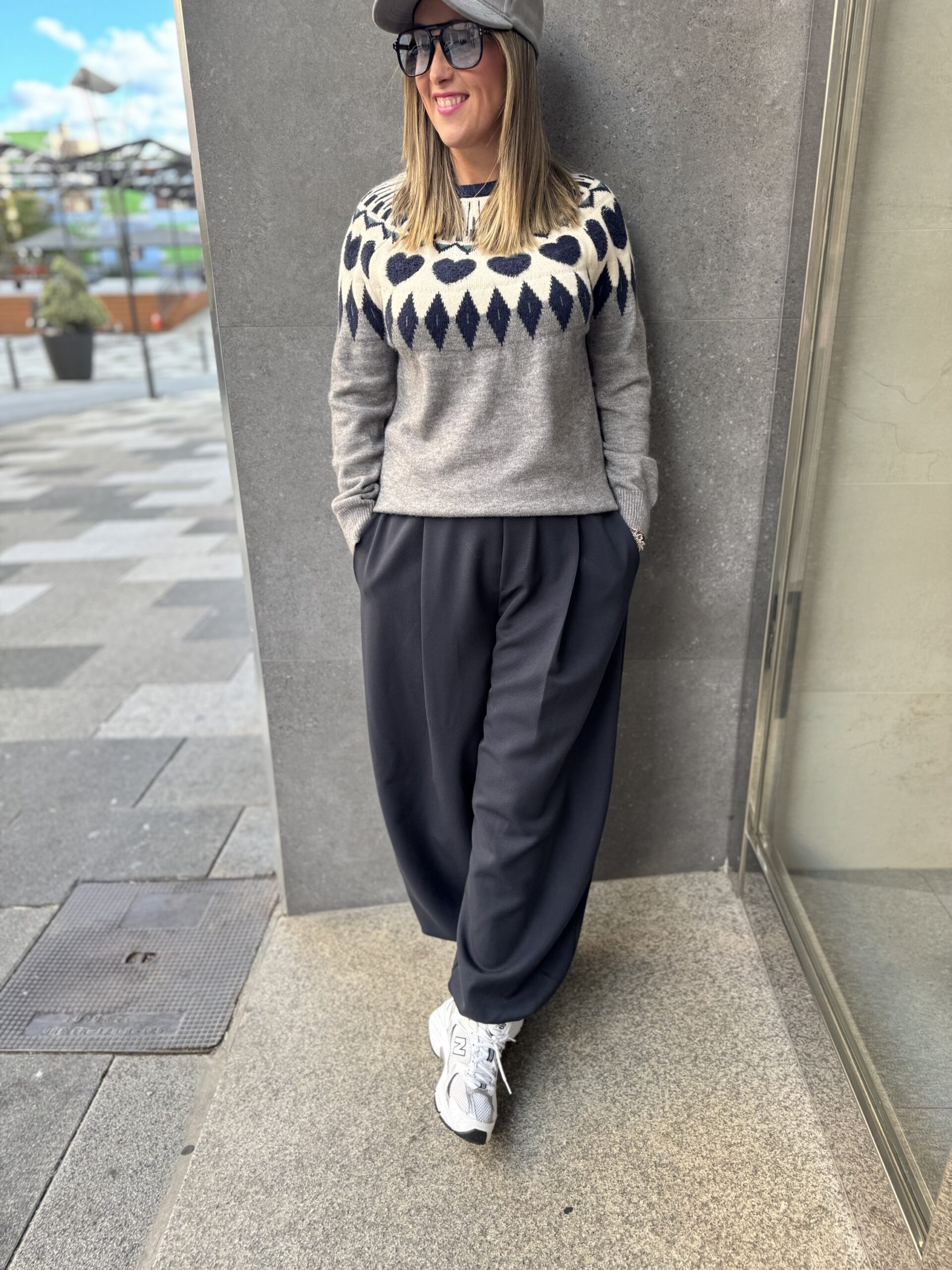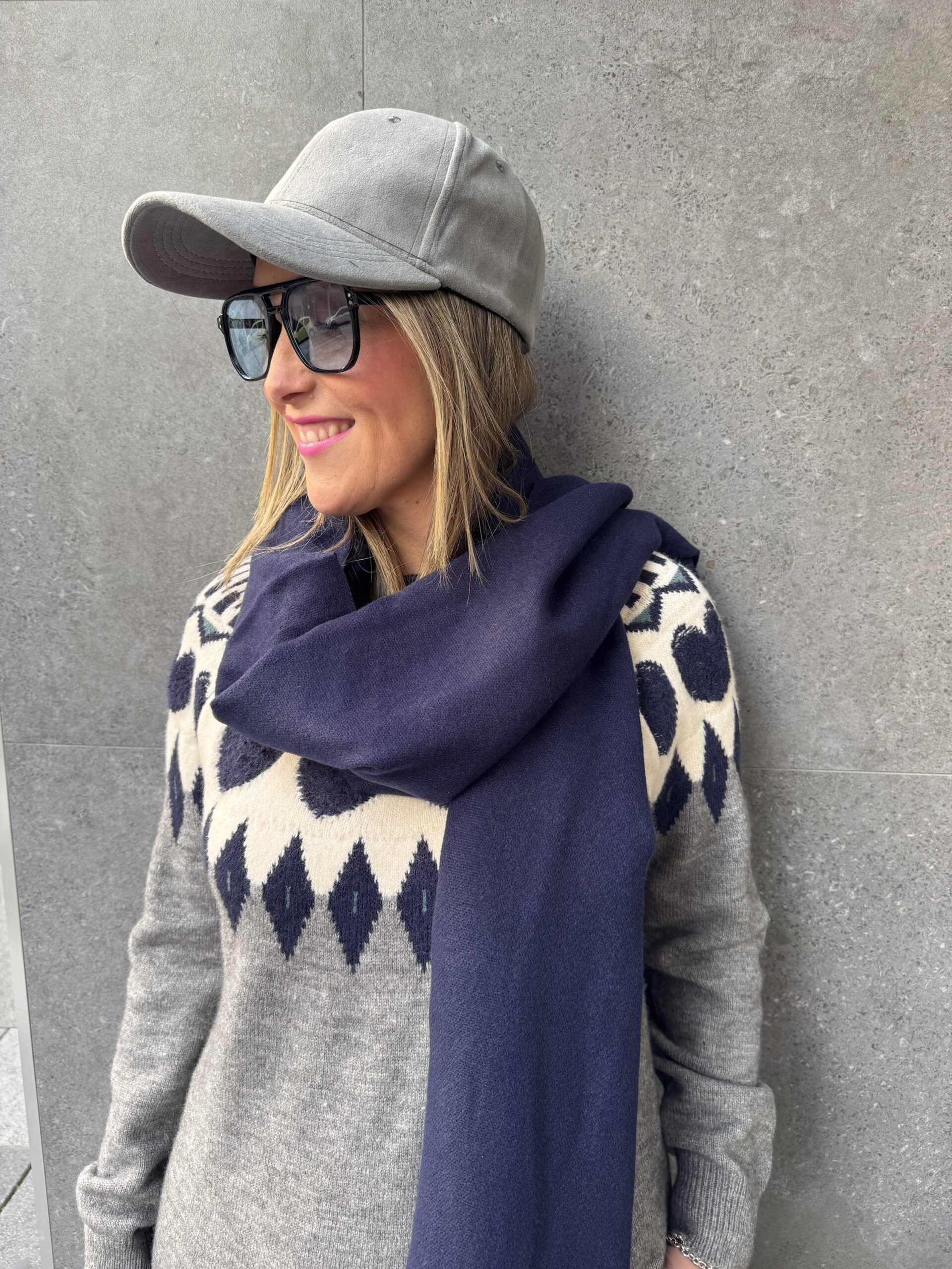 Jersey de punto suave ( no pica nada) en tonos azul marino y gris .
