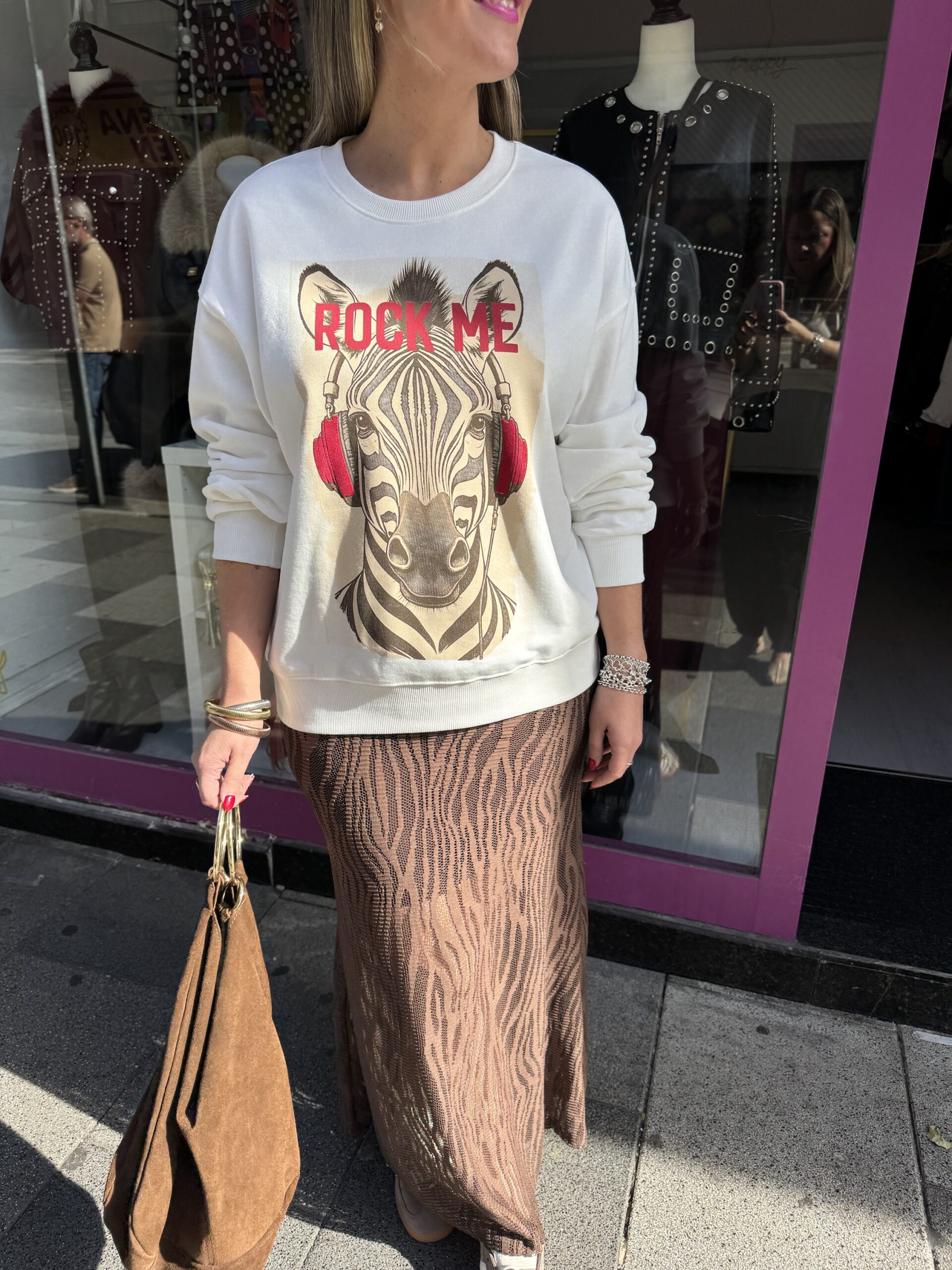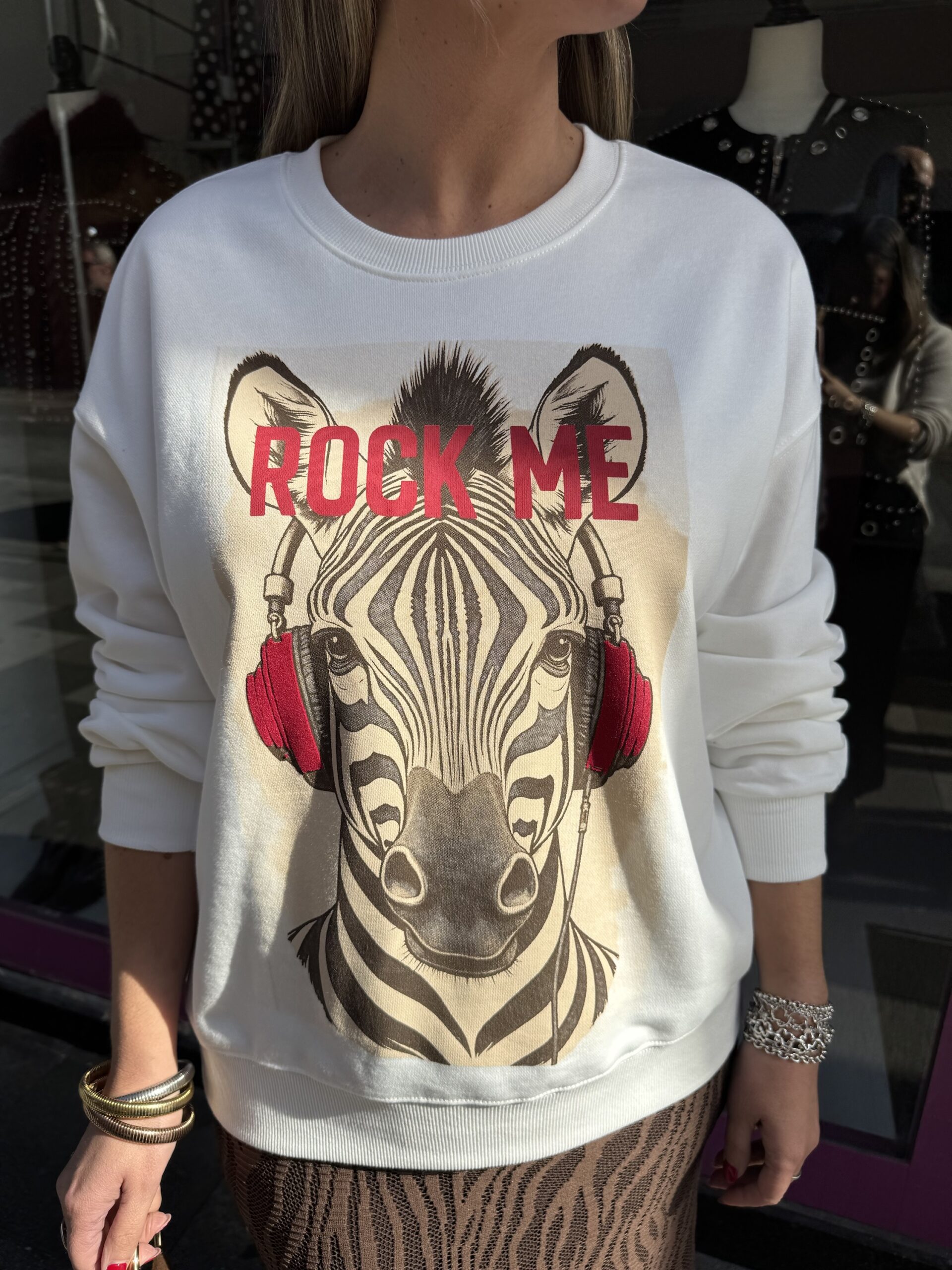 Sudadera blanca con ilustración en parte central .