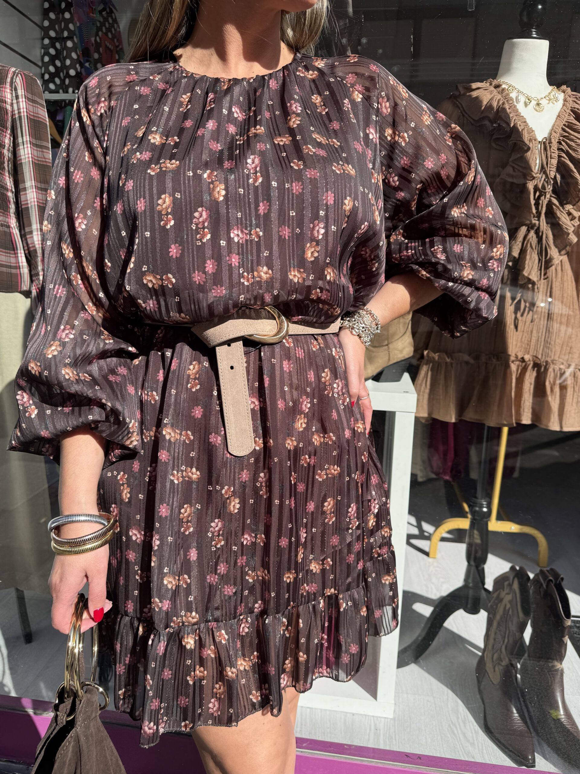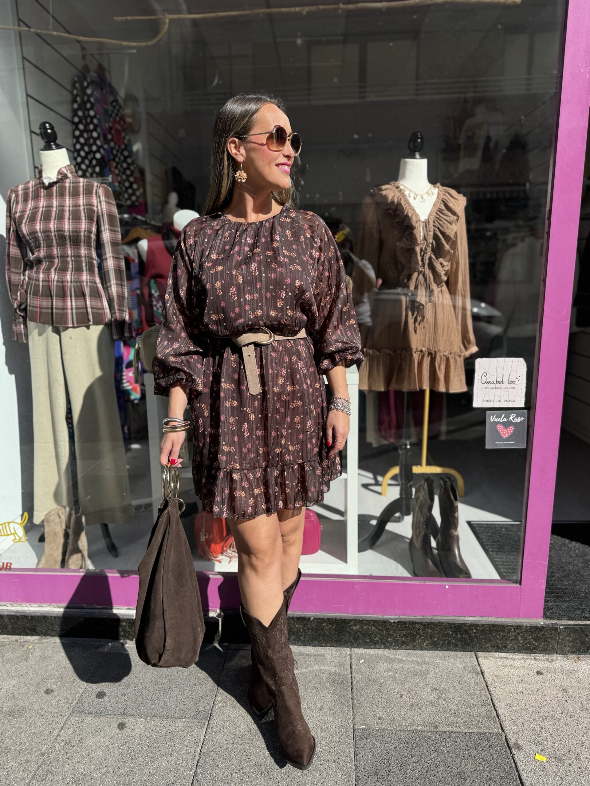 Vestido corto de gasa semi trasparente con forro interior. Cierre con boton en cuello . Goma elástica en cintura
