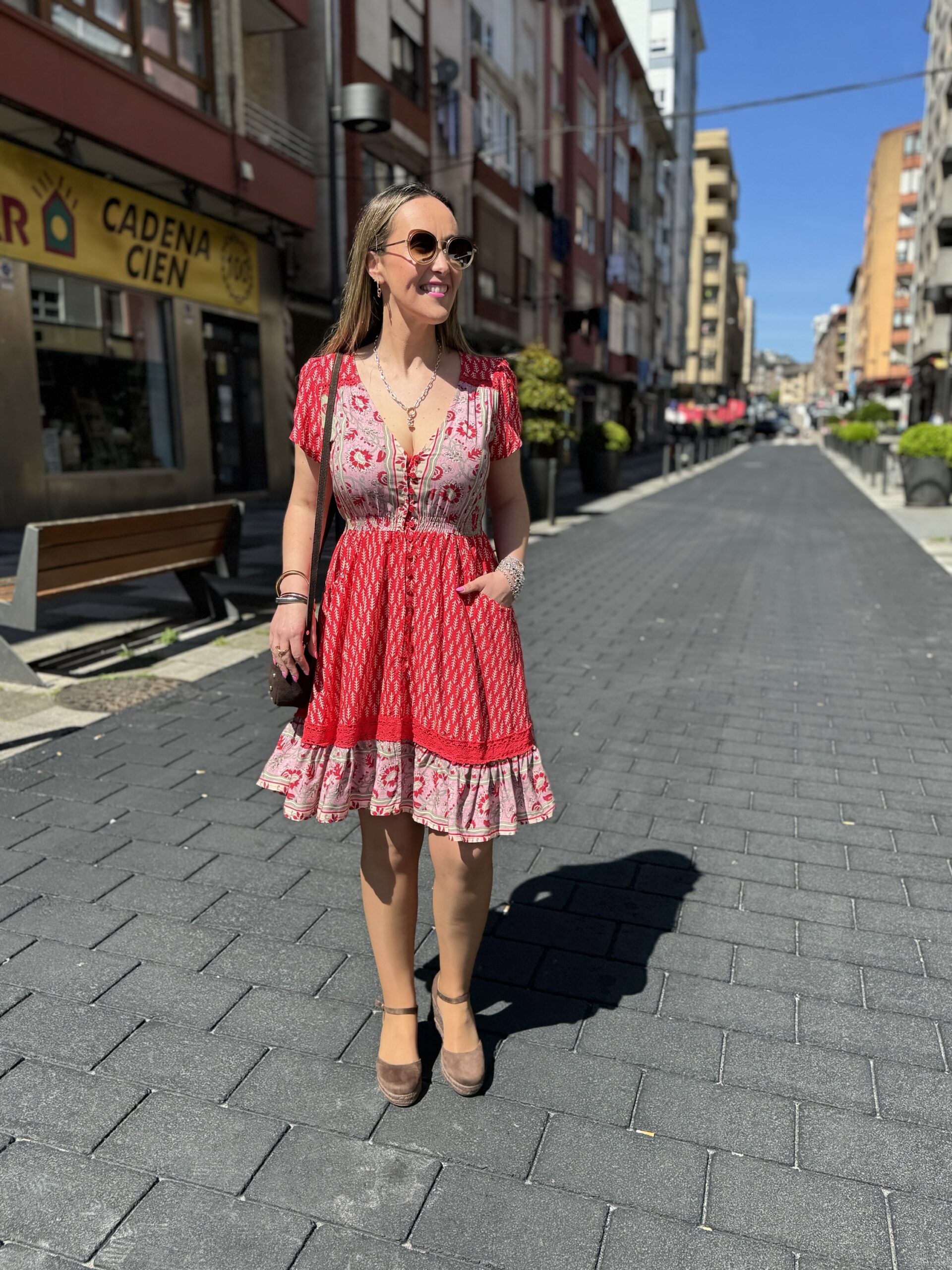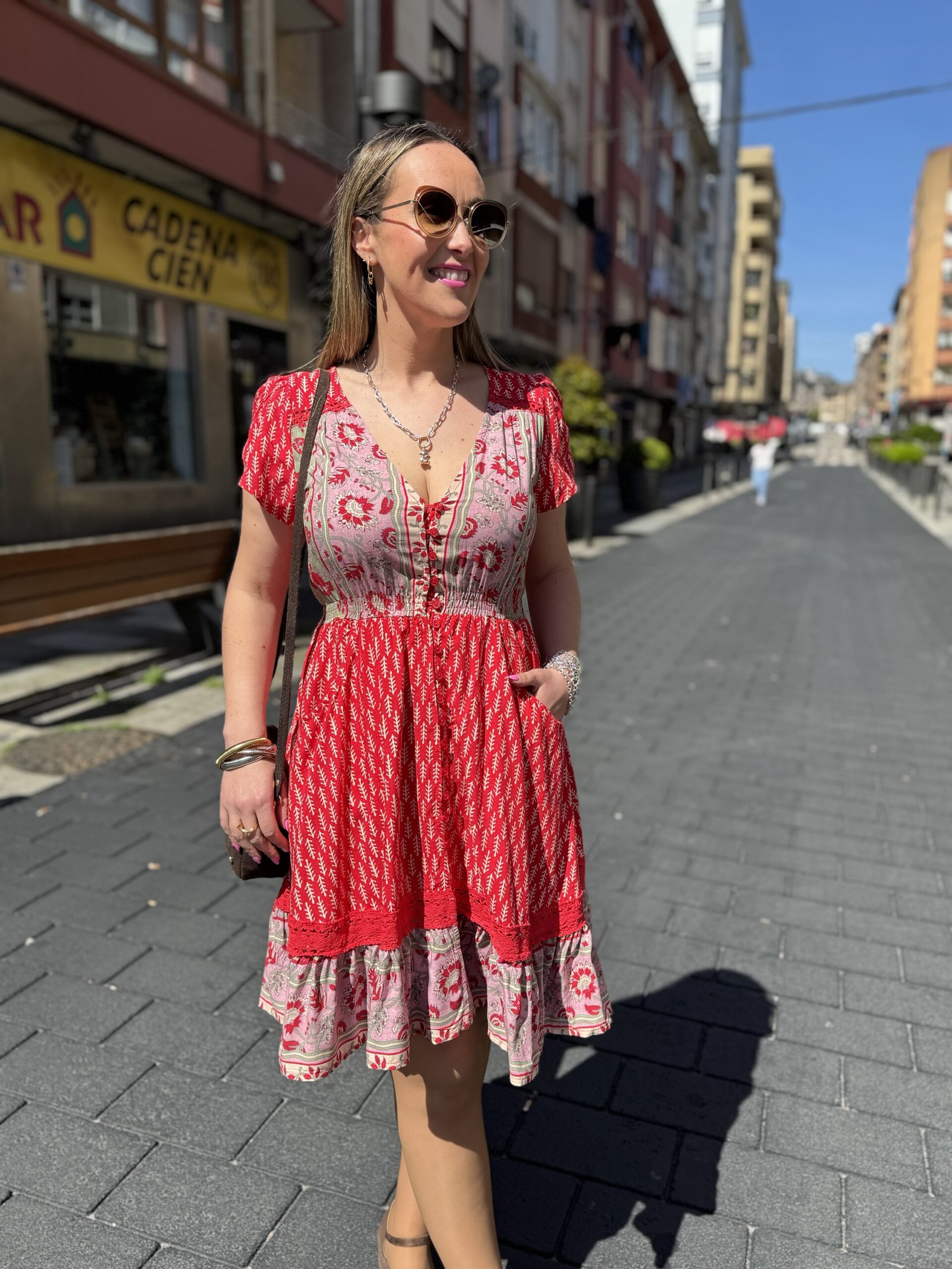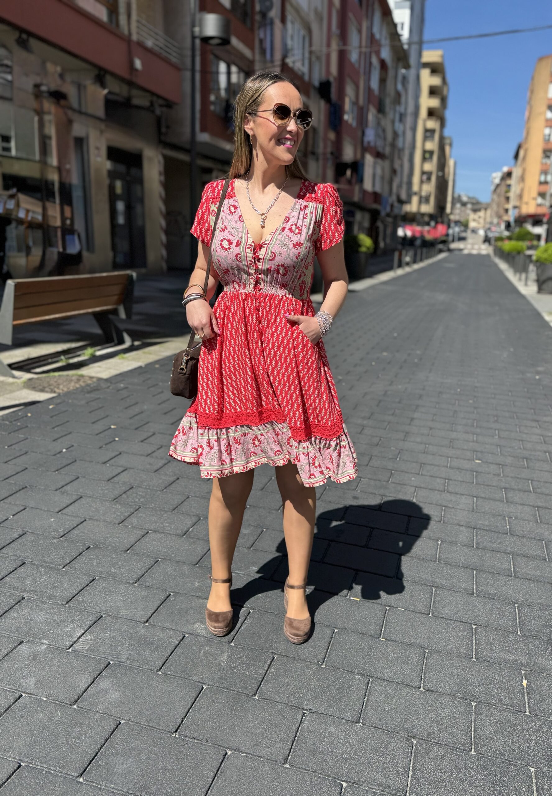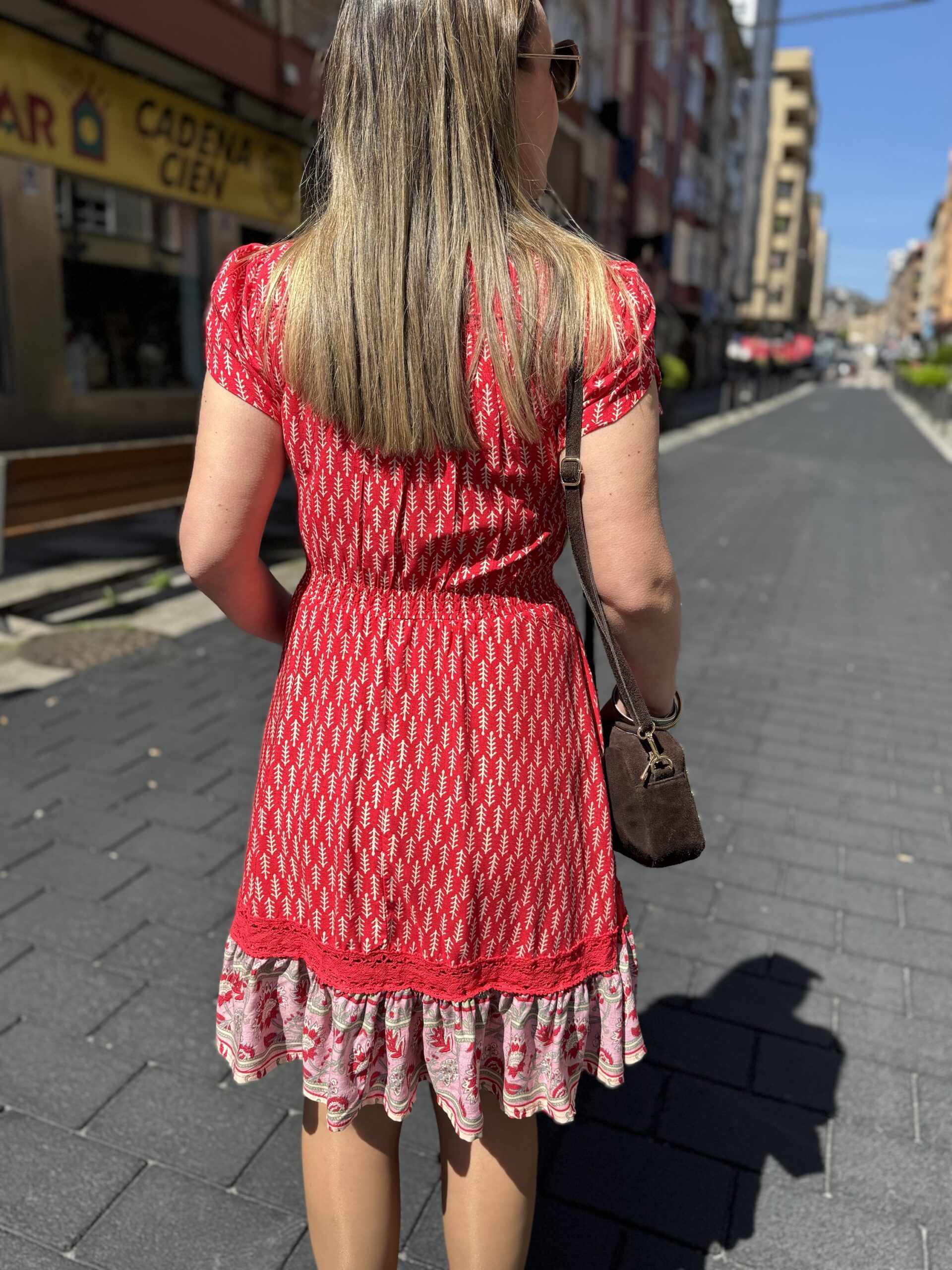 Es de manga corta mariposa , escote en pico y botonadura central regulable. Goma elástica en espalda. Detalles de encaje . Uno de los patrones que mejor sienta.